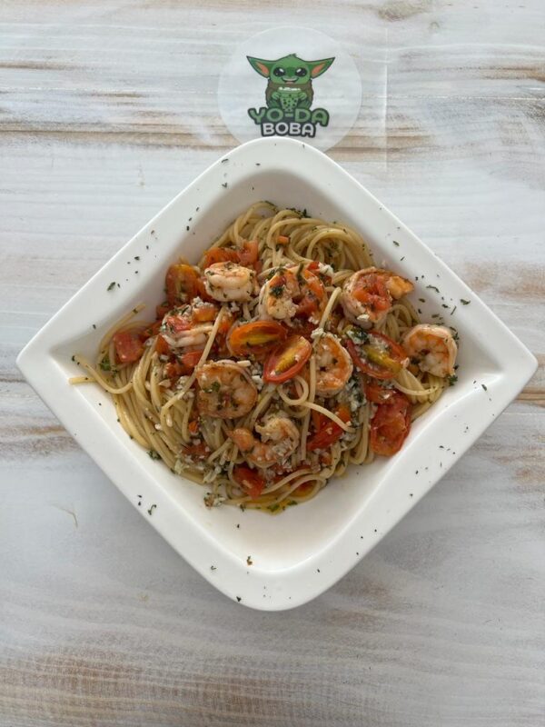 Shrimp pasta with cherry tomatoes/ Pasta Camarone con tomate cherry quantity